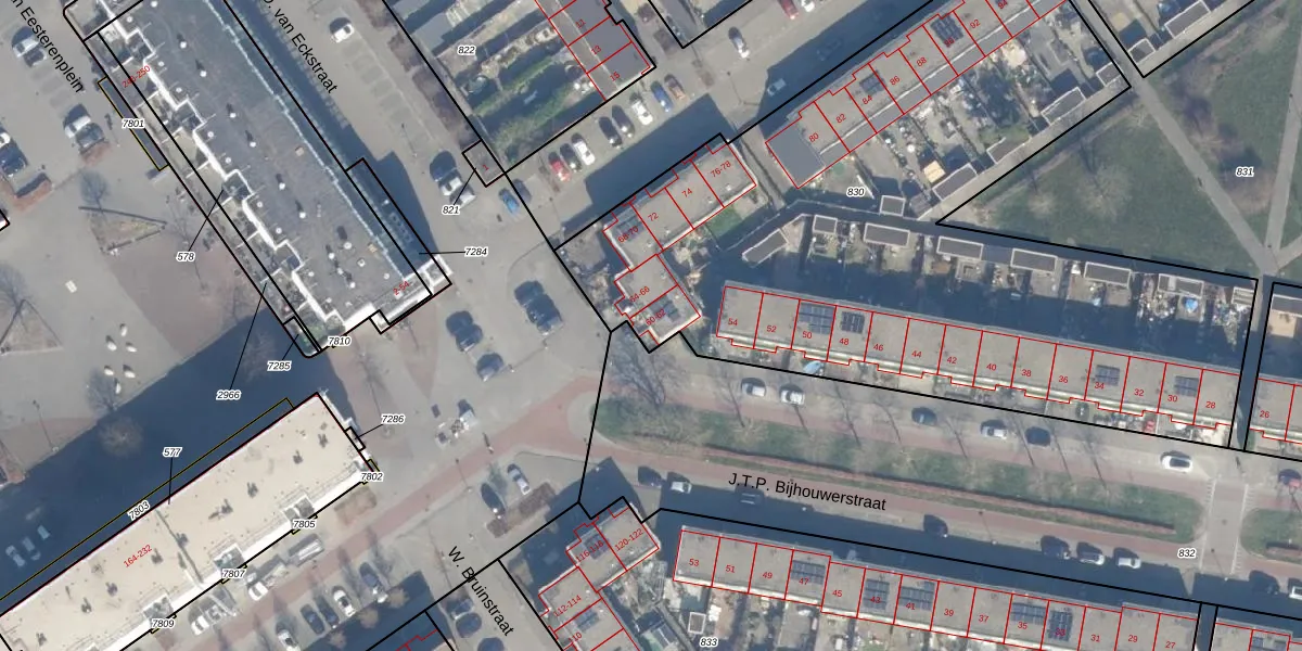 Het perceel waarop A.D. van Eckstraat 62 staat heeft een oppervlakte van 4087 m². Dit is een zeer groot perceel. De perceeloppervlakte wordt geregistreerd door het Kadaster. Gedetailleerde informatie over de maten van dit perceel kunt u vinden in het rapport Kadastrale kaart met maatvoering van A.D. van Eckstraat 62.
