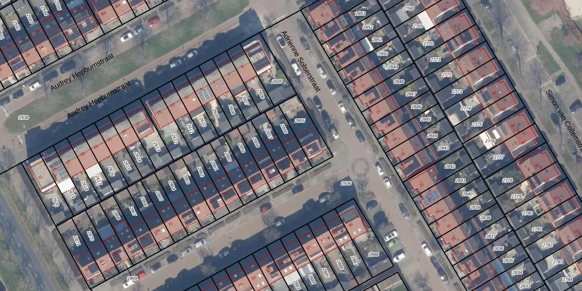 Gebruik de zoekbalk of klik op een perceel voor informatie over de adressen binnen dit perceel.