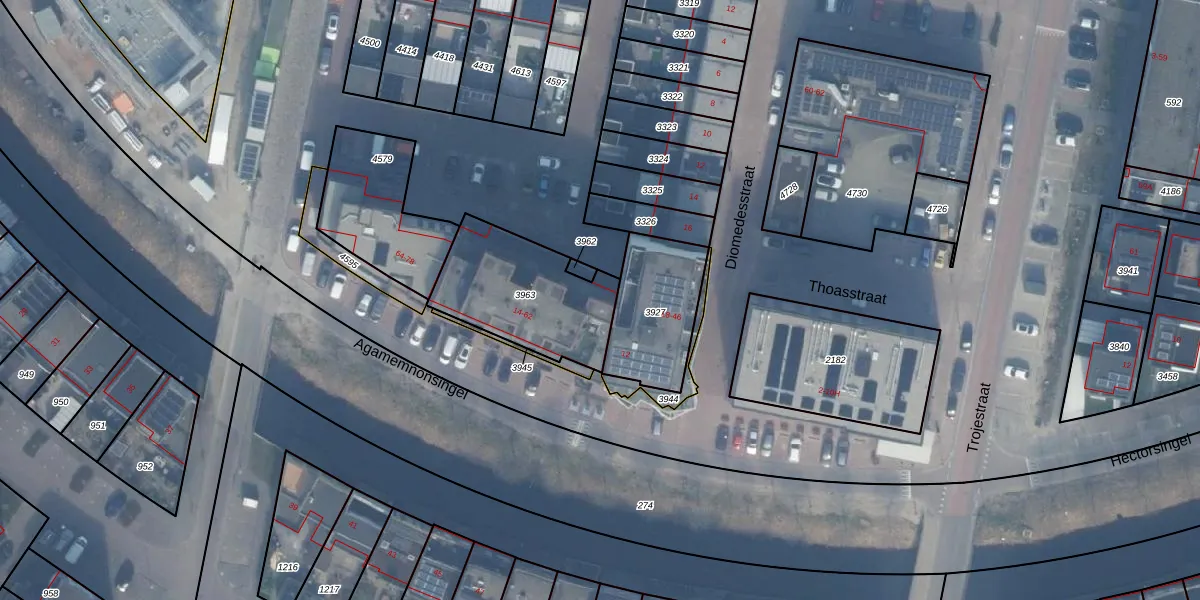 Het perceel waarop Agamemnonsingel 14 staat heeft een oppervlakte van 479 m². Dit is een groot perceel. De perceeloppervlakte wordt geregistreerd door het Kadaster. Gedetailleerde informatie over de maten van dit perceel kunt u vinden in het rapport Kadastrale kaart met maatvoering van Agamemnonsingel 14.