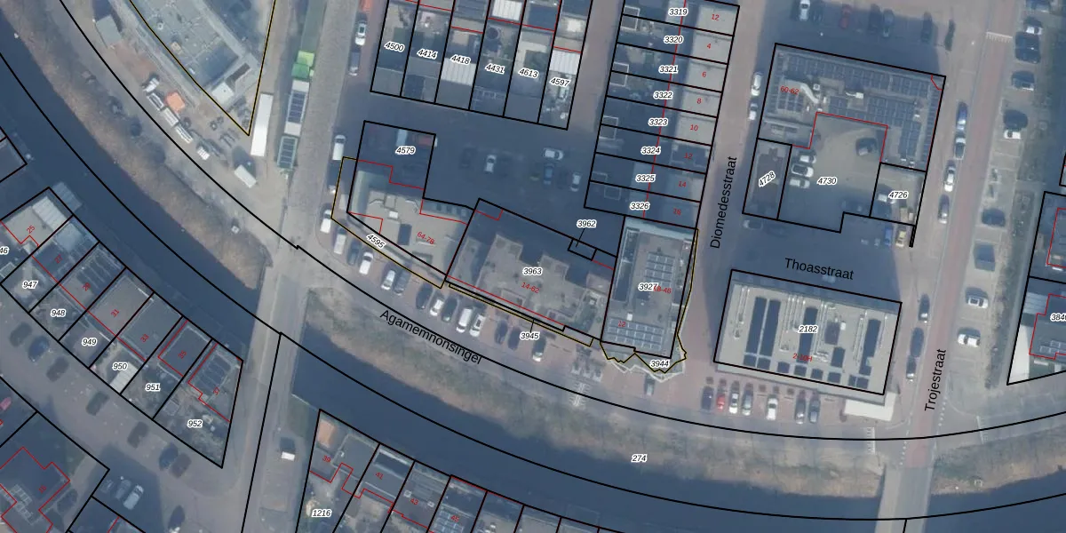 Het perceel waarop Agamemnonsingel 34 staat heeft een oppervlakte van 479 m². Dit is een groot perceel. De perceeloppervlakte wordt geregistreerd door het Kadaster. Gedetailleerde informatie over de maten van dit perceel kunt u vinden in het rapport Kadastrale kaart met maatvoering van Agamemnonsingel 34.