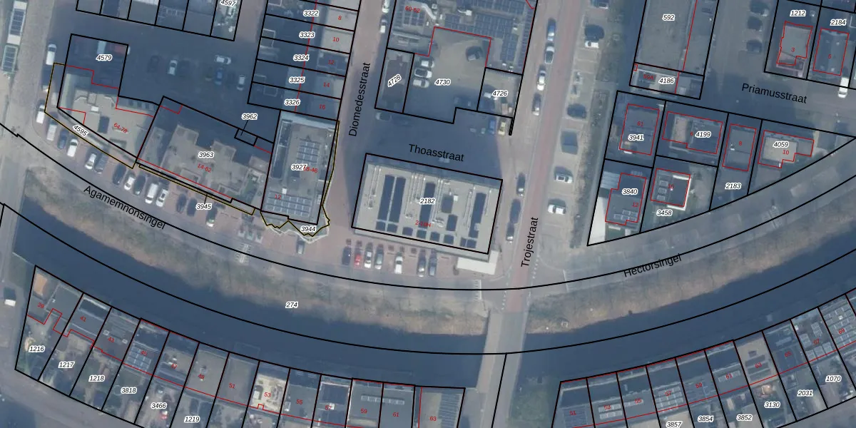 Het perceel waarop Agamemnonsingel 4-C staat heeft een oppervlakte van 570 m². Dit is een groot perceel. De perceeloppervlakte wordt geregistreerd door het Kadaster. Gedetailleerde informatie over de maten van dit perceel kunt u vinden in het rapport Kadastrale kaart met maatvoering van Agamemnonsingel 4-C.