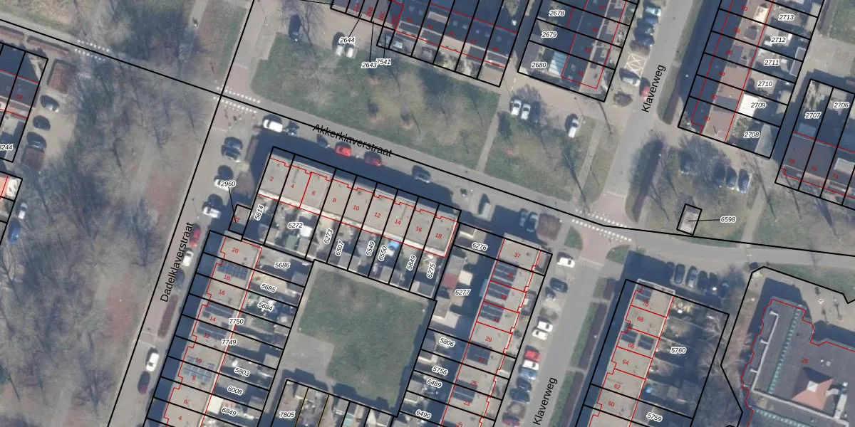 Gebruik de zoekbalk of klik op een perceel voor informatie over de adressen binnen dit perceel.