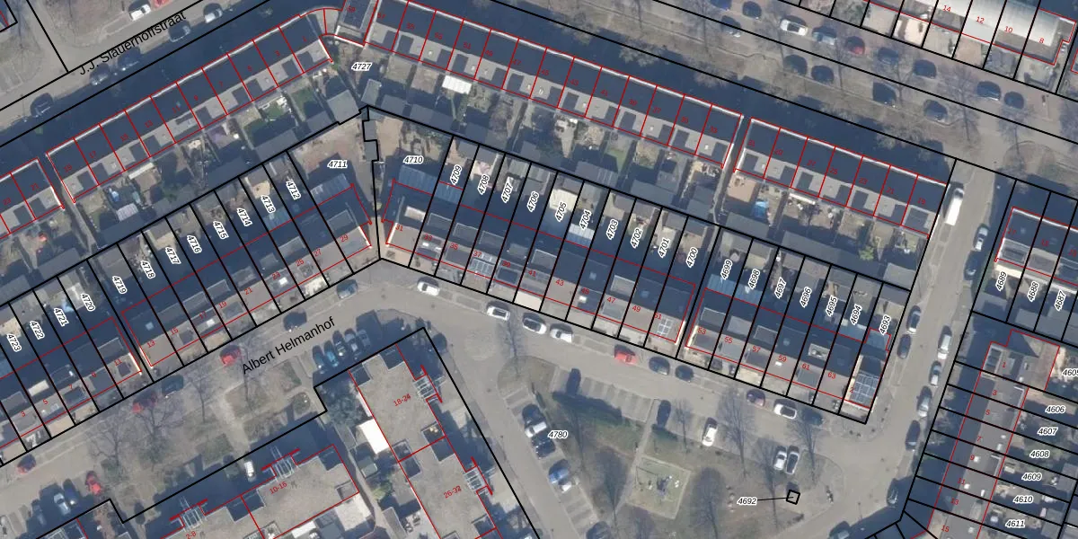 Het perceel waarop Albert Helmanhof 41 staat heeft een oppervlakte van 135 m². Dit is een middelgroot perceel. De perceeloppervlakte wordt geregistreerd door het Kadaster. Gedetailleerde informatie over de maten van dit perceel kunt u vinden in het rapport Kadastrale kaart met maatvoering van Albert Helmanhof 41.