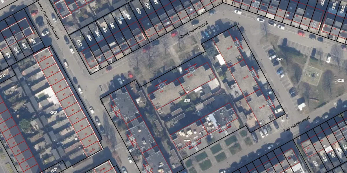Het perceel waarop Albert Helmanhof 6 staat heeft een oppervlakte van 4821 m². Dit is een zeer groot perceel. De perceeloppervlakte wordt geregistreerd door het Kadaster. Gedetailleerde informatie over de maten van dit perceel kunt u vinden in het rapport Kadastrale kaart met maatvoering van Albert Helmanhof 6.