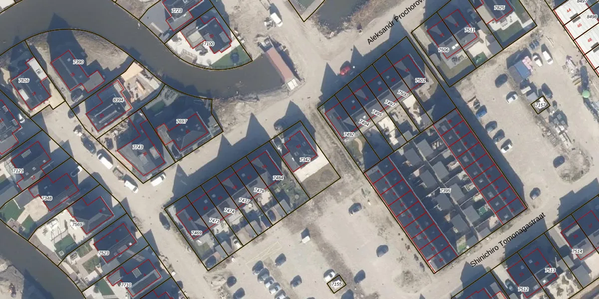 Aleksandr Prochorovstraat 53 is gelegen op kadastraal perceel AMR04C7342. Deze kadastrale aanduiding is uniek en wordt gebruikt door het Kadaster om eigendomsrechten en andere zakelijke rechten vast te leggen. Het perceel maakt onderdeel uit van de kadastrale gemeente Almere.