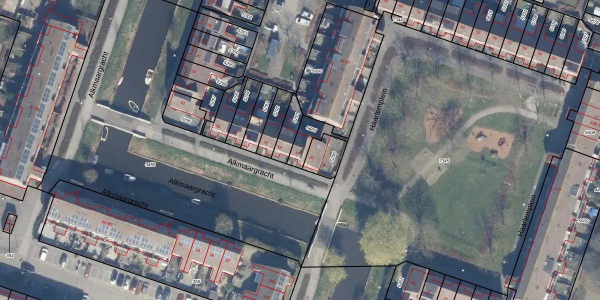 Alkmaargracht 45 is gelegen op kadastraal perceel AMR04K5605. Deze kadastrale aanduiding is uniek en wordt gebruikt door het Kadaster om eigendomsrechten en andere zakelijke rechten vast te leggen. Het perceel maakt onderdeel uit van de kadastrale gemeente Almere.