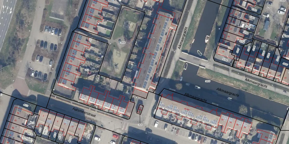 Alkmaargracht 54 is gelegen op kadastraal perceel AMR04K353. Deze kadastrale aanduiding is uniek en wordt gebruikt door het Kadaster om eigendomsrechten en andere zakelijke rechten vast te leggen. Het perceel maakt onderdeel uit van de kadastrale gemeente Almere.