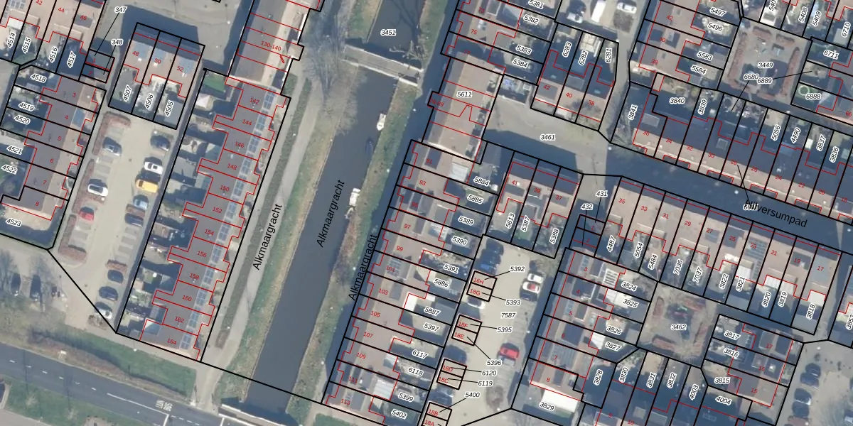 Alkmaargracht 95 is gelegen op kadastraal perceel AMR04K5389. Deze kadastrale aanduiding is uniek en wordt gebruikt door het Kadaster om eigendomsrechten en andere zakelijke rechten vast te leggen. Het perceel maakt onderdeel uit van de kadastrale gemeente Almere.