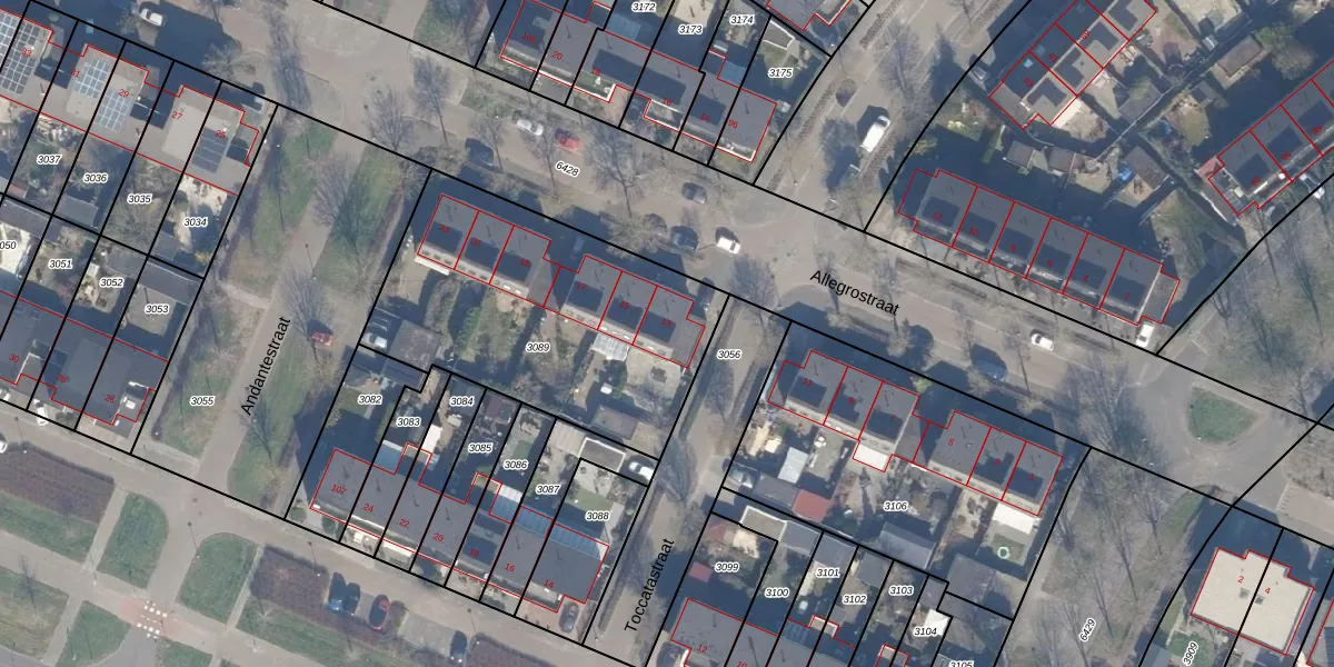 Het perceel waarop Allegrostraat 13 staat heeft een oppervlakte van 1326 m². Dit is een zeer groot perceel. De perceeloppervlakte wordt geregistreerd door het Kadaster. Gedetailleerde informatie over de maten van dit perceel kunt u vinden in het rapport Kadastrale kaart met maatvoering van Allegrostraat 13.
