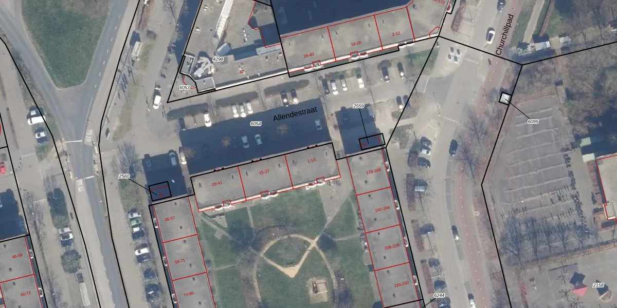Het perceel waarop Allendestraat 1 staat heeft een oppervlakte van 6040 m². Dit is een zeer groot perceel. De perceeloppervlakte wordt geregistreerd door het Kadaster. Gedetailleerde informatie over de maten van dit perceel kunt u vinden in het rapport Kadastrale kaart met maatvoering van Allendestraat 1.