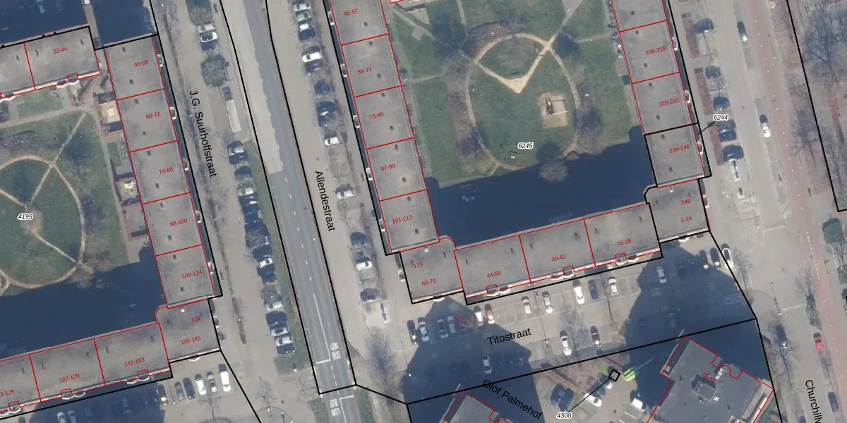 Allendestraat 113 is gelegen op kadastraal perceel AMR04O6245. Deze kadastrale aanduiding is uniek en wordt gebruikt door het Kadaster om eigendomsrechten en andere zakelijke rechten vast te leggen. Het perceel maakt onderdeel uit van de kadastrale gemeente Almere.