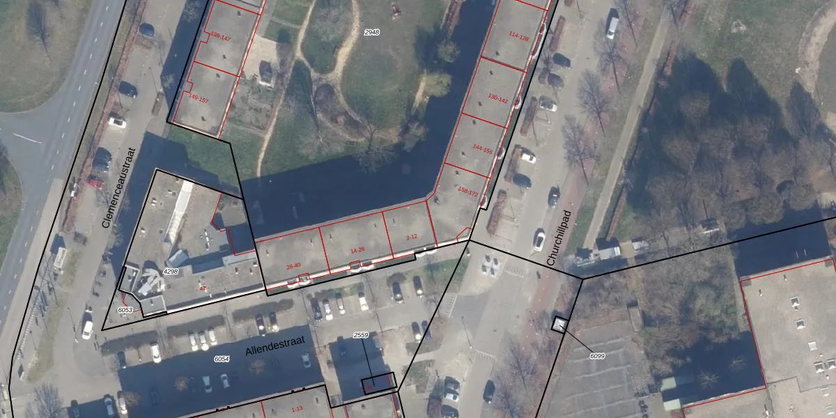 Allendestraat 12 is gelegen op kadastraal perceel AMR04O2948. Deze kadastrale aanduiding is uniek en wordt gebruikt door het Kadaster om eigendomsrechten en andere zakelijke rechten vast te leggen. Het perceel maakt onderdeel uit van de kadastrale gemeente Almere.