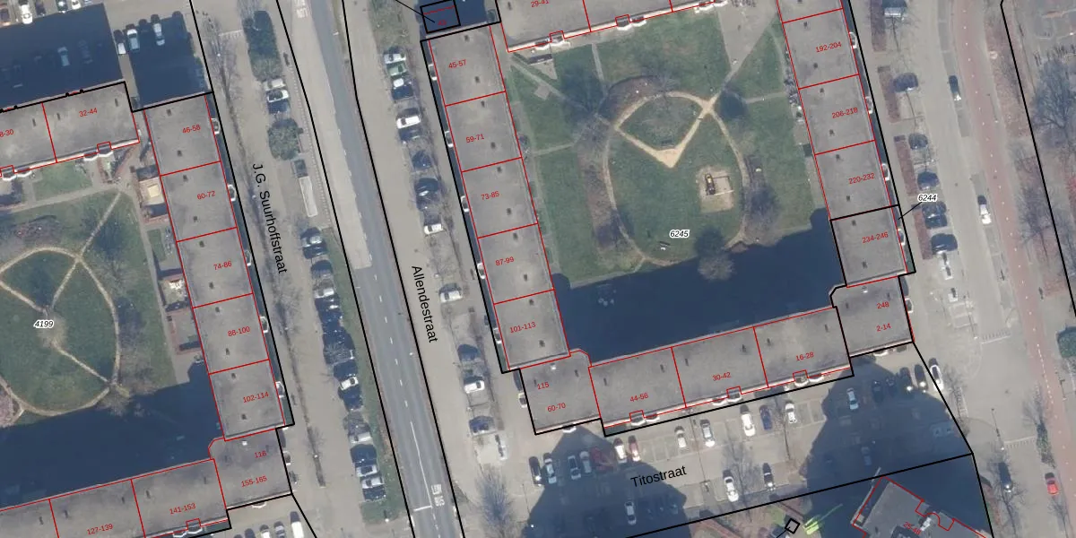 Het perceel waarop Allendestraat 99 staat heeft een oppervlakte van 6040 m². Dit is een zeer groot perceel. De perceeloppervlakte wordt geregistreerd door het Kadaster. Gedetailleerde informatie over de maten van dit perceel kunt u vinden in het rapport Kadastrale kaart met maatvoering van Allendestraat 99.