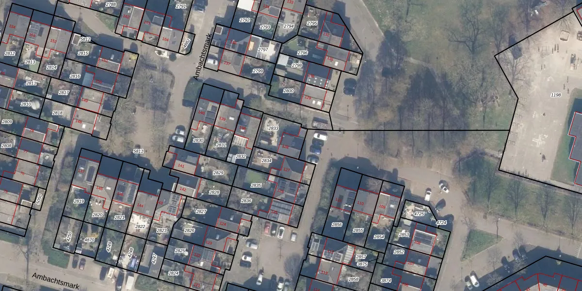 Het perceel waarop Ambachtsmark 128 staat heeft een oppervlakte van 192 m². Dit is een middelgroot perceel. De perceeloppervlakte wordt geregistreerd door het Kadaster. Gedetailleerde informatie over de maten van dit perceel kunt u vinden in het rapport Kadastrale kaart met maatvoering van Ambachtsmark 128.