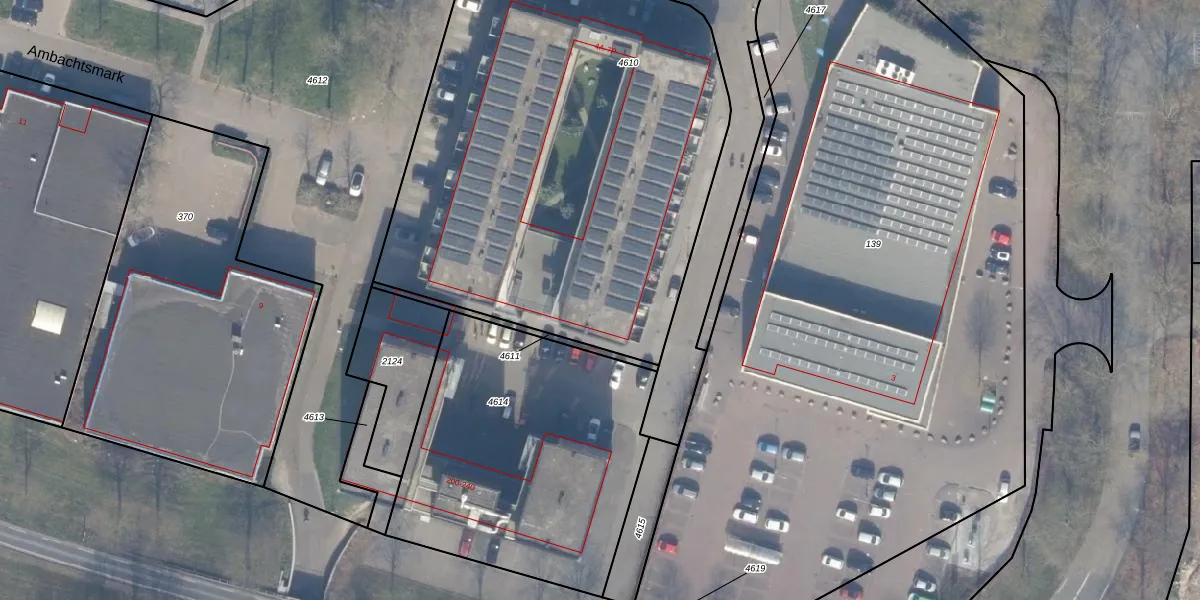 Het perceel waarop Ambachtsmark 6-G staat heeft een oppervlakte van 2856 m². Dit is een zeer groot perceel. De perceeloppervlakte wordt geregistreerd door het Kadaster. Gedetailleerde informatie over de maten van dit perceel kunt u vinden in het rapport Kadastrale kaart met maatvoering van Ambachtsmark 6-G.