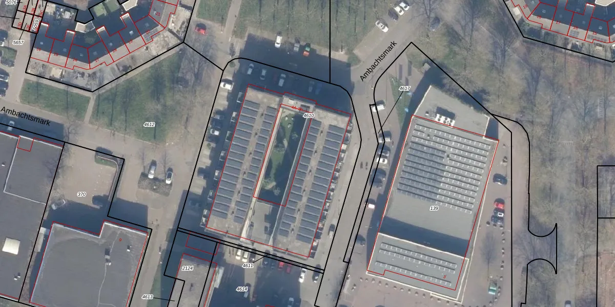 Het perceel waarop Ambachtsmark 7-C staat heeft een oppervlakte van 2856 m². Dit is een zeer groot perceel. De perceeloppervlakte wordt geregistreerd door het Kadaster. Gedetailleerde informatie over de maten van dit perceel kunt u vinden in het rapport Kadastrale kaart met maatvoering van Ambachtsmark 7-C.