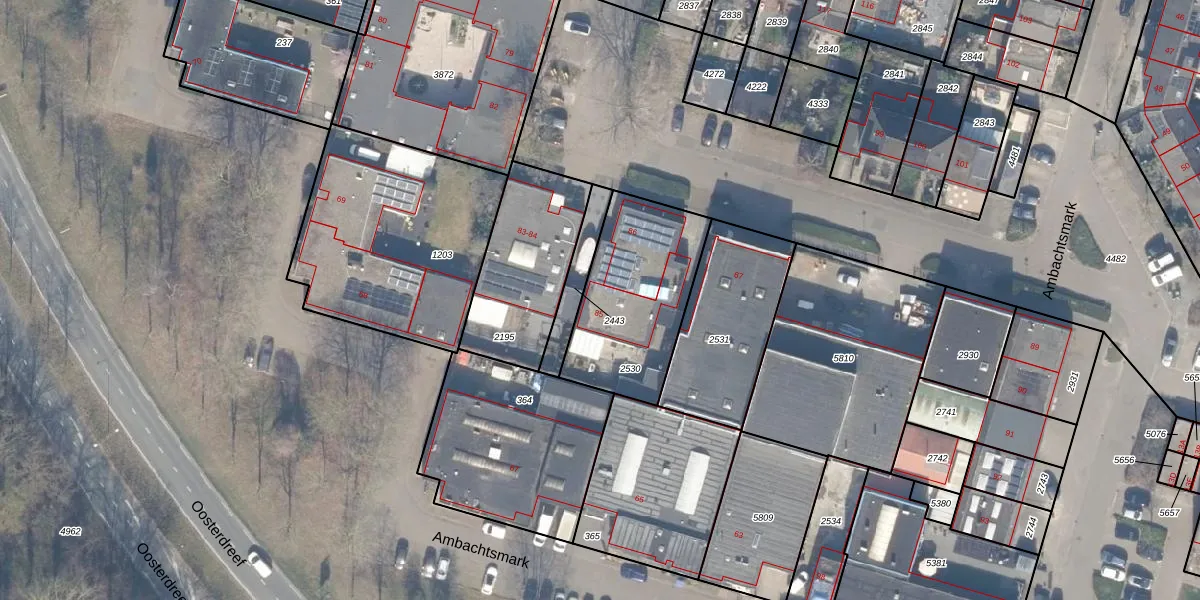 Het perceel waarop Ambachtsmark 85 staat heeft een oppervlakte van 553 m². Dit is een groot perceel. De perceeloppervlakte wordt geregistreerd door het Kadaster. Gedetailleerde informatie over de maten van dit perceel kunt u vinden in het rapport Kadastrale kaart met maatvoering van Ambachtsmark 85.