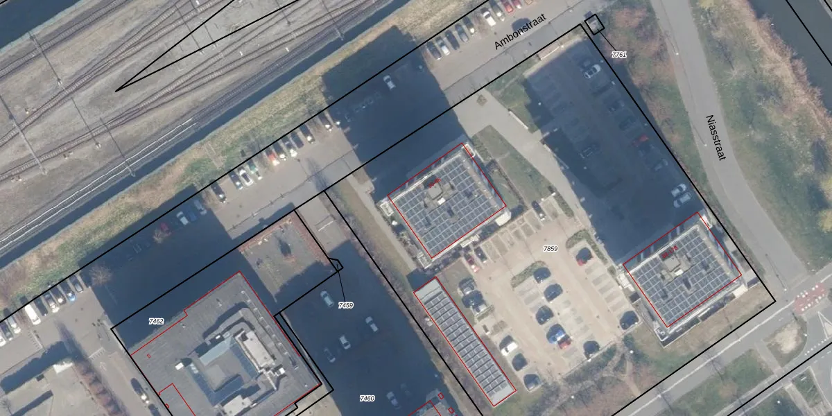 Het perceel waarop Ambonstraat 36 staat heeft een oppervlakte van 6080 m². Dit is een zeer groot perceel. De perceeloppervlakte wordt geregistreerd door het Kadaster. Gedetailleerde informatie over de maten van dit perceel kunt u vinden in het rapport Kadastrale kaart met maatvoering van Ambonstraat 36.