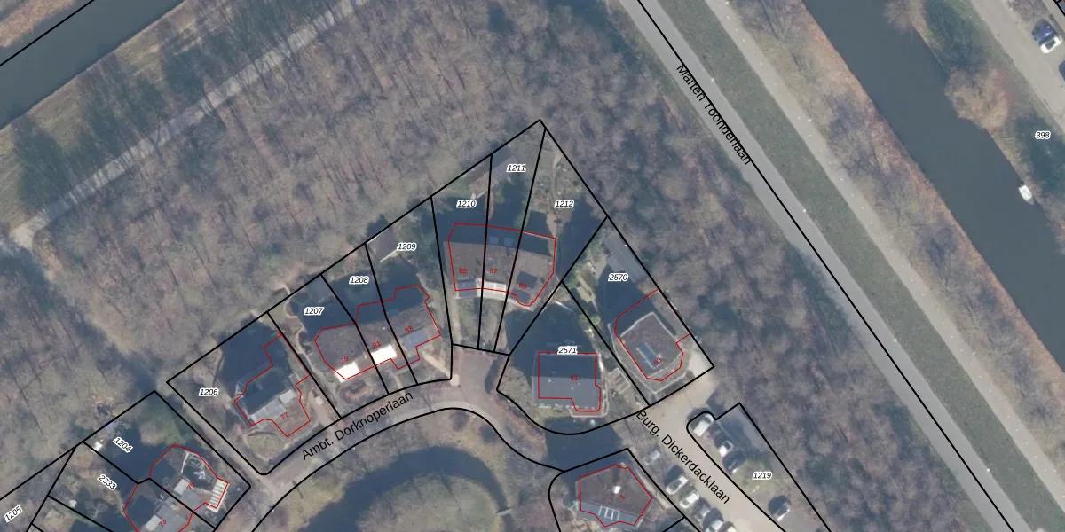 Het perceel waarop Ambt. Dorknoperlaan 89 staat heeft een oppervlakte van 369 m². Dit is een groot perceel. De perceeloppervlakte wordt geregistreerd door het Kadaster. Gedetailleerde informatie over de maten van dit perceel kunt u vinden in het rapport Kadastrale kaart met maatvoering van Ambt. Dorknoperlaan 89.