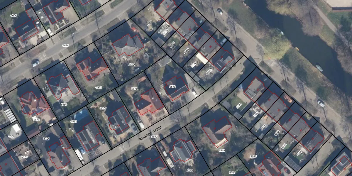 Het perceel waarop Ananasstraat 17 staat heeft een oppervlakte van 605 m². Dit is een groot perceel. De perceeloppervlakte wordt geregistreerd door het Kadaster. Gedetailleerde informatie over de maten van dit perceel kunt u vinden in het rapport Kadastrale kaart met maatvoering van Ananasstraat 17.