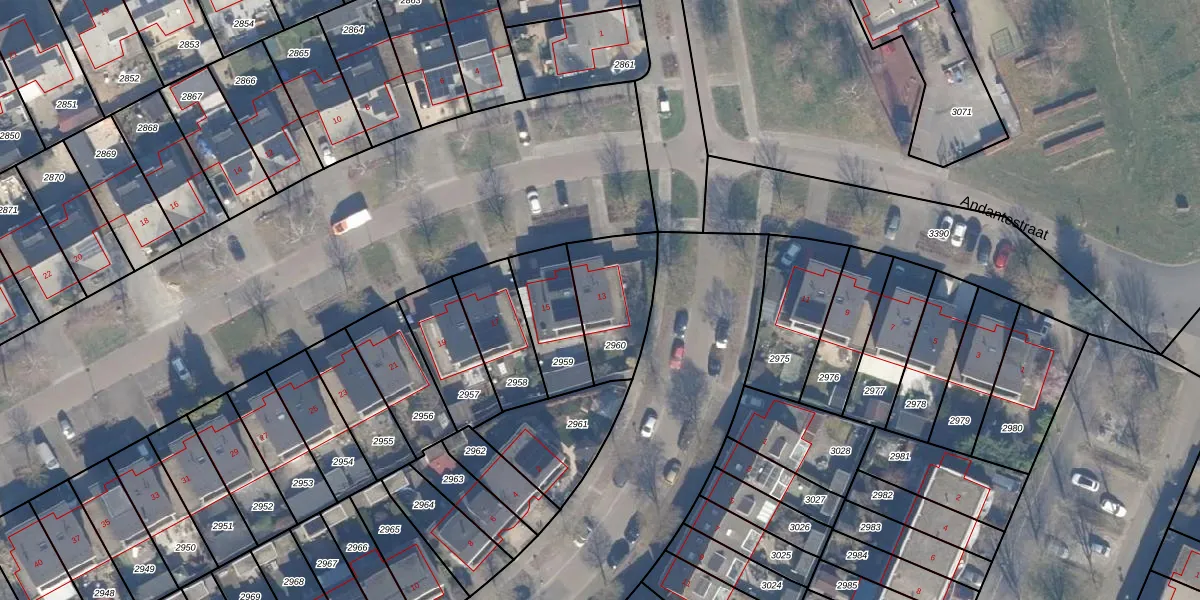 Gebruik de zoekbalk of klik op een perceel voor informatie over de adressen binnen dit perceel.