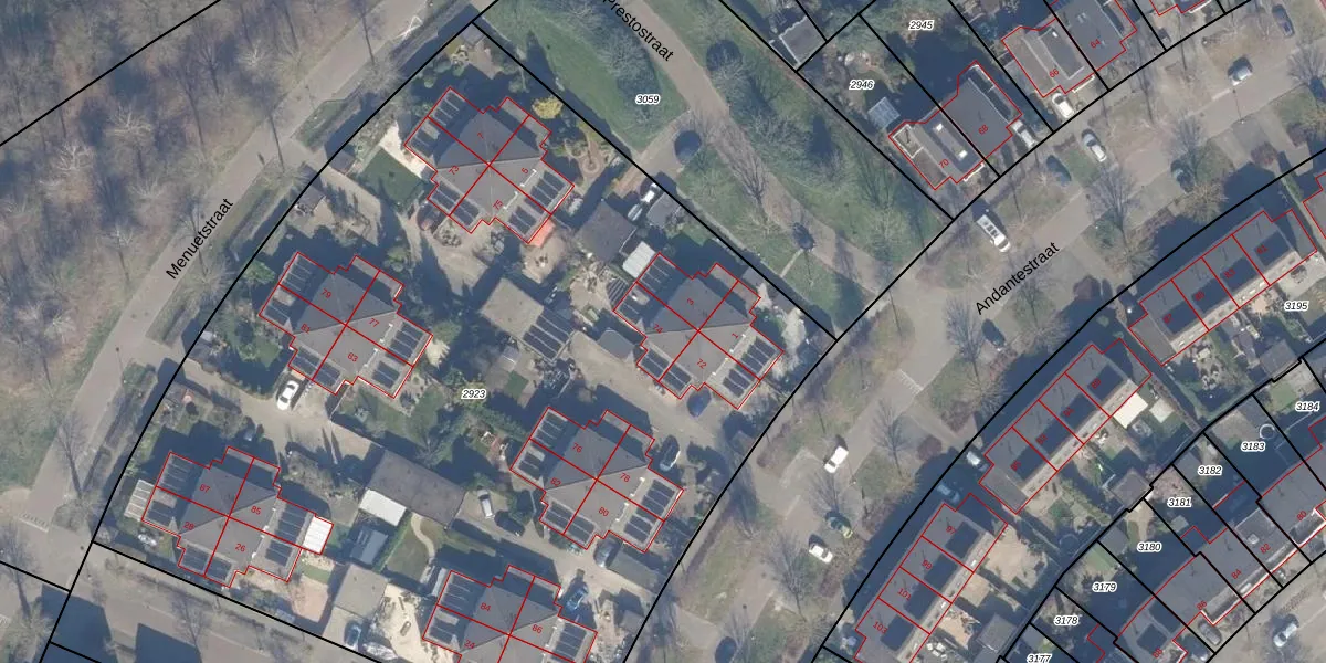 Het perceel waarop Andantestraat 74 staat heeft een oppervlakte van 6655 m². Dit is een zeer groot perceel. De perceeloppervlakte wordt geregistreerd door het Kadaster. Gedetailleerde informatie over de maten van dit perceel kunt u vinden in het rapport Kadastrale kaart met maatvoering van Andantestraat 74.