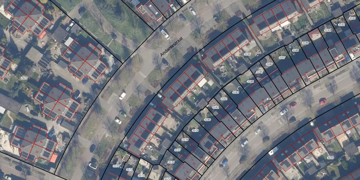 Het perceel waarop Andantestraat 93 staat heeft een oppervlakte van 3810 m². Dit is een zeer groot perceel. De perceeloppervlakte wordt geregistreerd door het Kadaster. Gedetailleerde informatie over de maten van dit perceel kunt u vinden in het rapport Kadastrale kaart met maatvoering van Andantestraat 93.