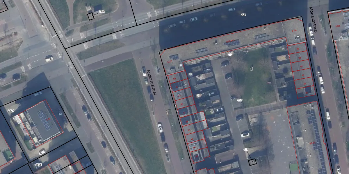 Het perceel waarop Andorrastraat 31 staat heeft een oppervlakte van 1,2 ha. Dit is een zeer groot perceel. De perceeloppervlakte wordt geregistreerd door het Kadaster. Gedetailleerde informatie over de maten van dit perceel kunt u vinden in het rapport Kadastrale kaart met maatvoering van Andorrastraat 31.