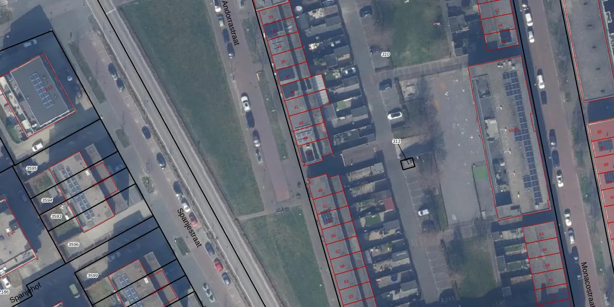 Het perceel waarop Andorrastraat 47 staat heeft een oppervlakte van 1,2 ha. Dit is een zeer groot perceel. De perceeloppervlakte wordt geregistreerd door het Kadaster. Gedetailleerde informatie over de maten van dit perceel kunt u vinden in het rapport Kadastrale kaart met maatvoering van Andorrastraat 47.