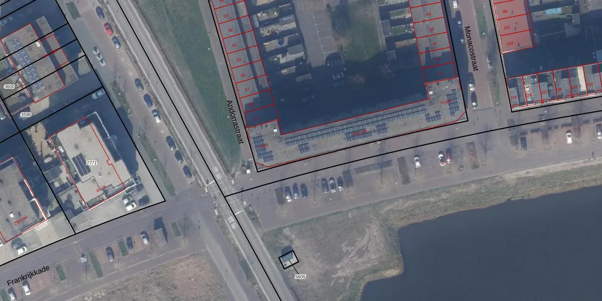 Andorrastraat 77 is gelegen op kadastraal perceel AMR04W310. Deze kadastrale aanduiding is uniek en wordt gebruikt door het Kadaster om eigendomsrechten en andere zakelijke rechten vast te leggen. Het perceel maakt onderdeel uit van de kadastrale gemeente Almere.