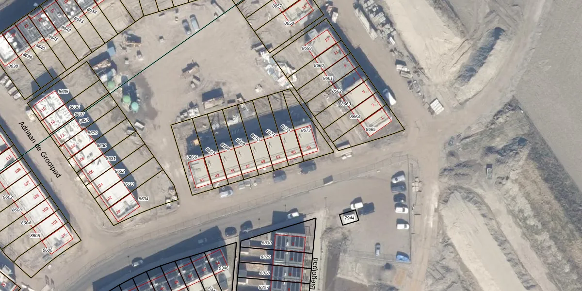 Het perceel waarop het adres ligt is AMR04-C-8672. De afkorting 'AMR04' staat voor kadastrale gemeente Almere. De gemiddelde perceelgrootte in Almere is 3327,75 m². Dit perceel is kleiner: de perceeloppervlakte bedraagt 136 m². De grootste perceeloppervlakte in de kadastrale gemeente is 32,12 km². De kleinste oppervlakte bedraagt 0 m². Dit is het enige adres dat aanwezig is op het perceel. In de Basisregistratie Kadaster (BRK) werden de grenzen van het perceel geregistreerd op 13-05-2024.