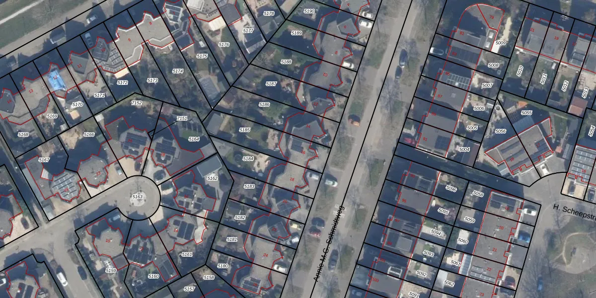 Annie M.G. Schmidtweg 16 is gelegen op kadastraal perceel AMR04Q5185. Deze kadastrale aanduiding is uniek en wordt gebruikt door het Kadaster om eigendomsrechten en andere zakelijke rechten vast te leggen. Het perceel maakt onderdeel uit van de kadastrale gemeente Almere.