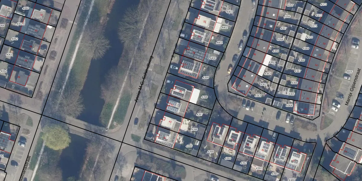 Annie M.G. Schmidtweg 39 is gelegen op kadastraal perceel AMR04Q4398. Deze kadastrale aanduiding is uniek en wordt gebruikt door het Kadaster om eigendomsrechten en andere zakelijke rechten vast te leggen. Het perceel maakt onderdeel uit van de kadastrale gemeente Almere.