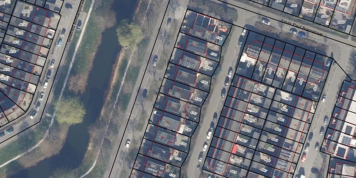 Het adres is gelegen op perceel 4786 in de sectie Q en de kadastrale gemeente Almere. De kadastrale aanduiding is aldus AMR04-Q-4786. De gemiddelde perceelgrootte in Almere is 3327,75 m². Dit perceel is kleiner: de perceeloppervlakte bedraagt 234 m². Het grootste perceel in de kadastrale gemeente is 32,12 km². Het kleinste perceel heeft een oppervlakte van 0 m². Op het perceel bevinden zich geen andere adressen. De laatste wijziging in het de Basisregistratie Kadaster (BRK) was op 17-11-1999.