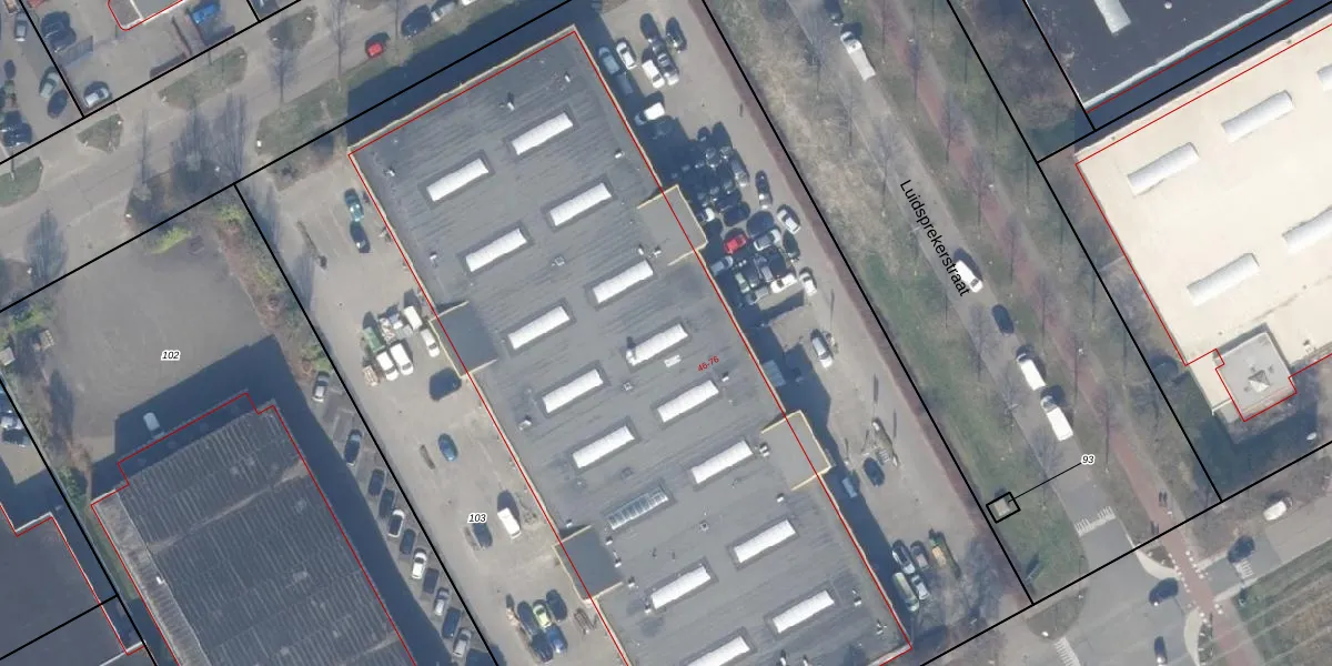 Het adres ligt op het perceel AMR04-S-103, dat zich in de kadastrale gemeente Almere bevindt. De oppervlakte van het perceel is 8479 m². Dat is groter dan gemiddeld in Almere, waar de gemiddelde perceeloppervlakte op 3327,75 m² ligt. De grootste perceeloppervlakte in de kadastrale gemeente is 32,12 km². De kleinste oppervlakte bedraagt 0 m². Er zijn 16 adressen aanwezig op het perceel. In de Basisregistratie Kadaster (BRK) werden de grenzen van het perceel geregistreerd op 27-10-2003.