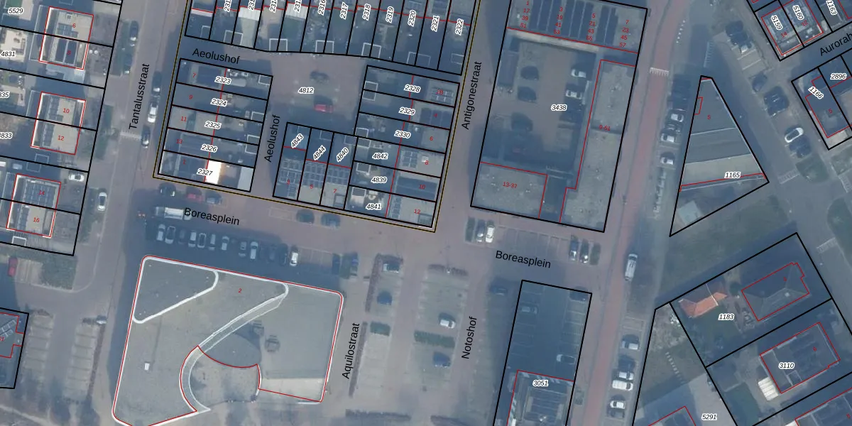 Antigonestraat 12 is gelegen op kadastraal perceel AMR04W4841. Deze kadastrale aanduiding is uniek en wordt gebruikt door het Kadaster om eigendomsrechten en andere zakelijke rechten vast te leggen. Het perceel maakt onderdeel uit van de kadastrale gemeente Almere.