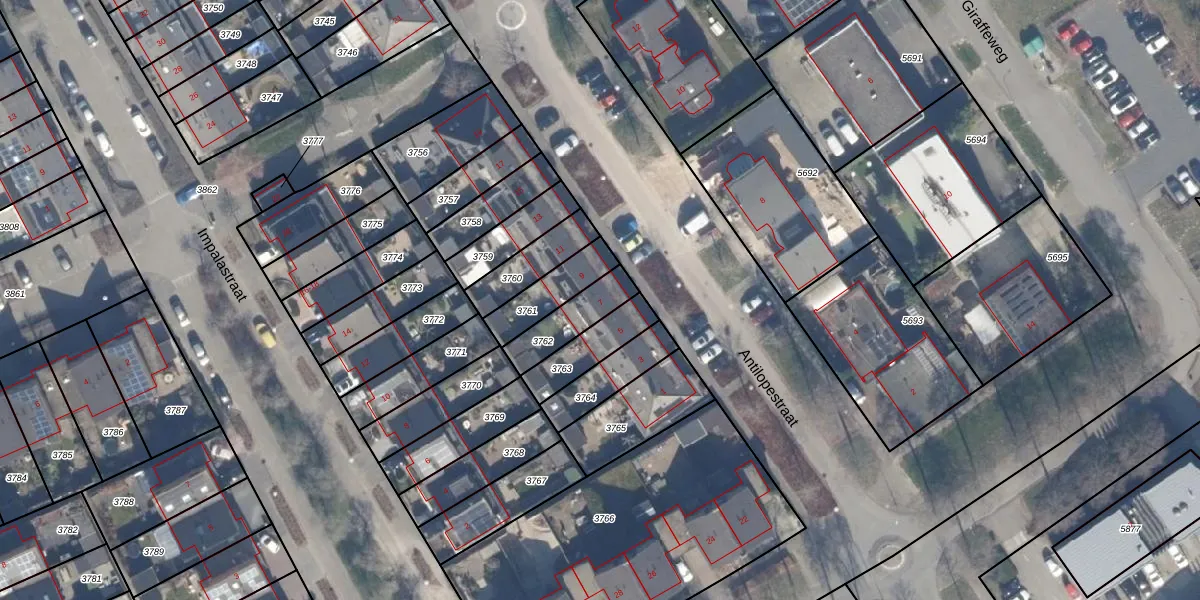 Antilopestraat 7 is gelegen op kadastraal perceel AMR04N3762. Deze kadastrale aanduiding is uniek en wordt gebruikt door het Kadaster om eigendomsrechten en andere zakelijke rechten vast te leggen. Het perceel maakt onderdeel uit van de kadastrale gemeente Almere.