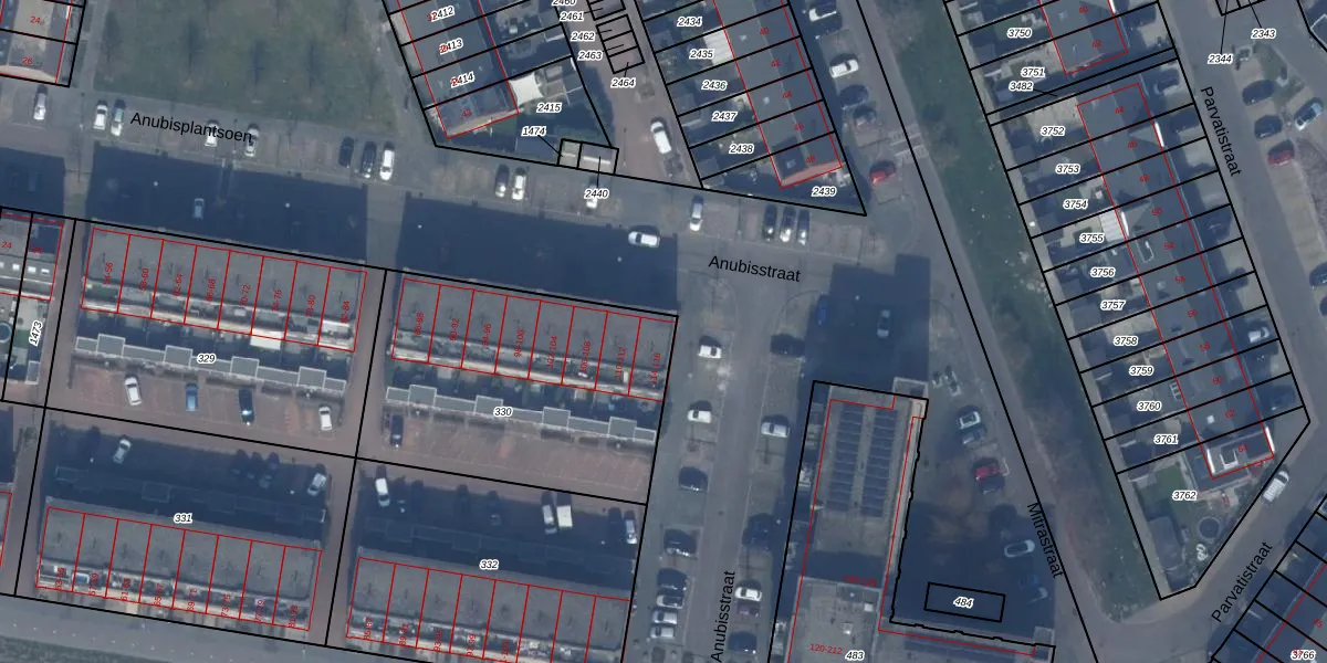 Het perceel waarop Anubisstraat 116 staat heeft een oppervlakte van 1280 m². Dit is een zeer groot perceel. De perceeloppervlakte wordt geregistreerd door het Kadaster. Gedetailleerde informatie over de maten van dit perceel kunt u vinden in het rapport Kadastrale kaart met maatvoering van Anubisstraat 116.