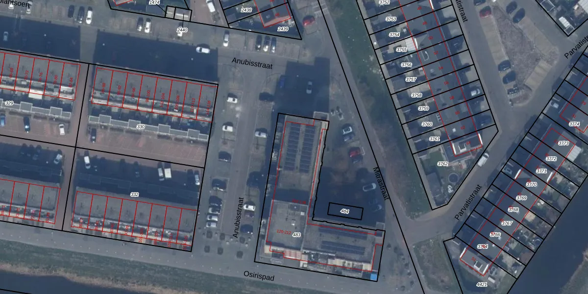 Het perceel waarop Anubisstraat 172 staat heeft een oppervlakte van 1310 m². Dit is een zeer groot perceel. De perceeloppervlakte wordt geregistreerd door het Kadaster. Gedetailleerde informatie over de maten van dit perceel kunt u vinden in het rapport Kadastrale kaart met maatvoering van Anubisstraat 172.