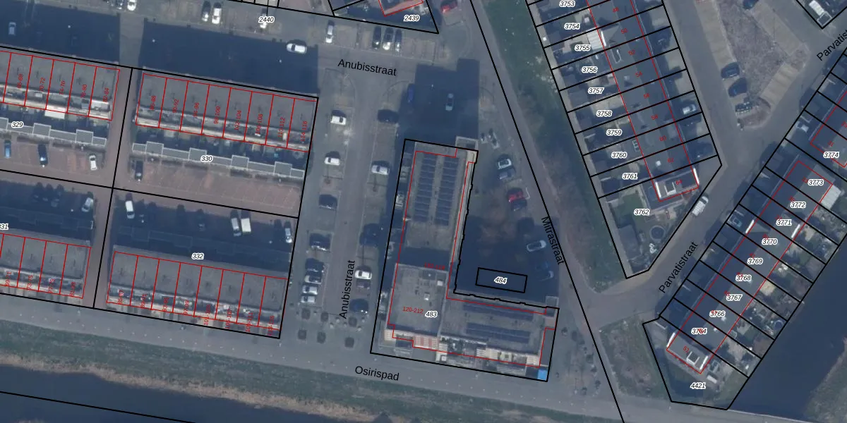 Het perceel waarop Anubisstraat 174 staat heeft een oppervlakte van 1310 m². Dit is een zeer groot perceel. De perceeloppervlakte wordt geregistreerd door het Kadaster. Gedetailleerde informatie over de maten van dit perceel kunt u vinden in het rapport Kadastrale kaart met maatvoering van Anubisstraat 174.