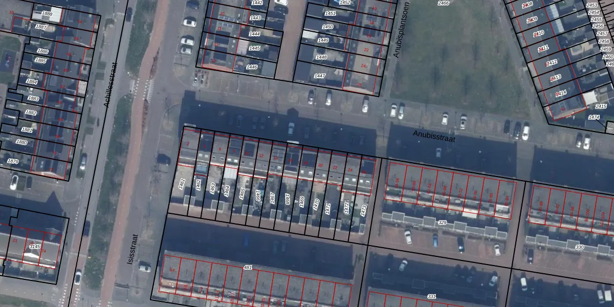 Het perceel waarop Anubisstraat 18 staat heeft een oppervlakte van 147 m². Dit is een middelgroot perceel. De perceeloppervlakte wordt geregistreerd door het Kadaster. Gedetailleerde informatie over de maten van dit perceel kunt u vinden in het rapport Kadastrale kaart met maatvoering van Anubisstraat 18.