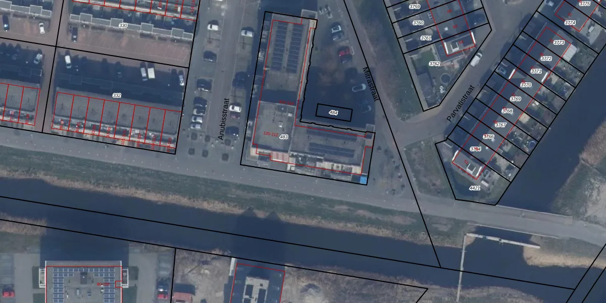 Anubisstraat 180 is gelegen op kadastraal perceel AMR04W483. Deze kadastrale aanduiding is uniek en wordt gebruikt door het Kadaster om eigendomsrechten en andere zakelijke rechten vast te leggen. Het perceel maakt onderdeel uit van de kadastrale gemeente Almere.