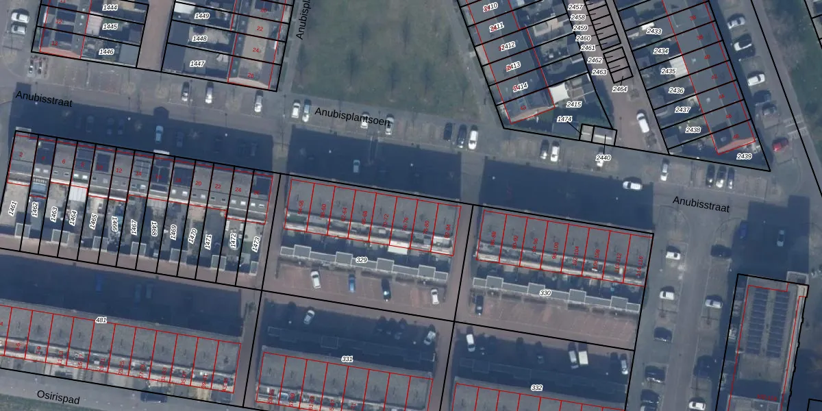 Het perceel waarop Anubisstraat 76 staat heeft een oppervlakte van 1366 m². Dit is een zeer groot perceel. De perceeloppervlakte wordt geregistreerd door het Kadaster. Gedetailleerde informatie over de maten van dit perceel kunt u vinden in het rapport Kadastrale kaart met maatvoering van Anubisstraat 76.