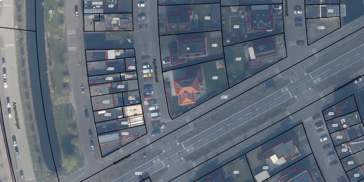 Apollostraat 13 is gelegen op kadastraal perceel AMR04W912. Deze kadastrale aanduiding is uniek en wordt gebruikt door het Kadaster om eigendomsrechten en andere zakelijke rechten vast te leggen. Het perceel maakt onderdeel uit van de kadastrale gemeente Almere.