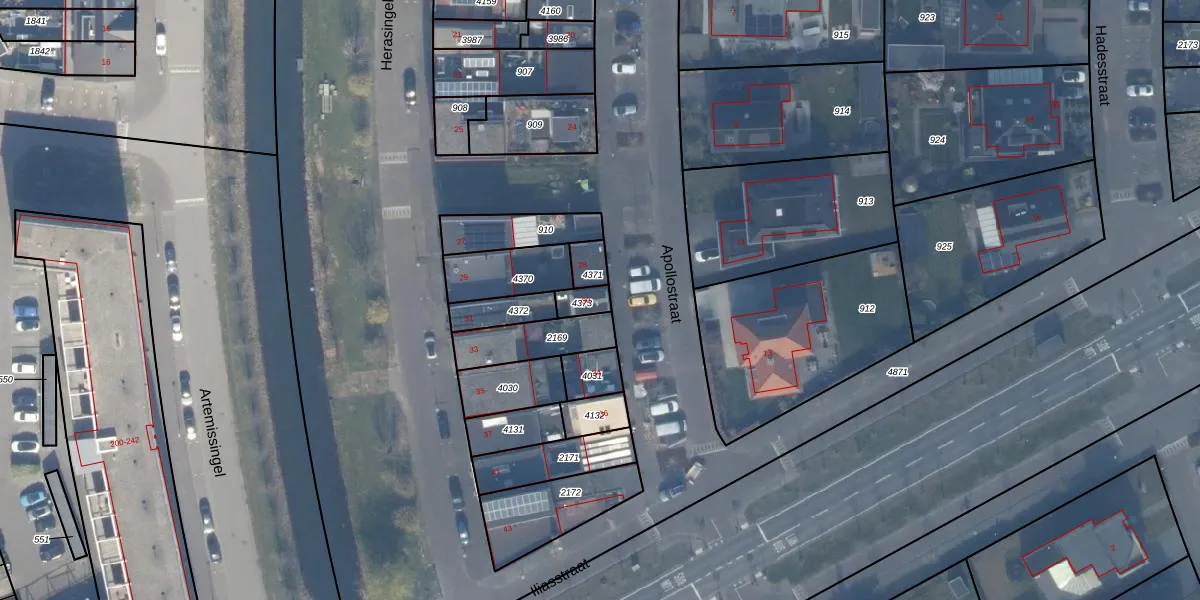 Het perceel waarop Apollostraat 30 staat heeft een oppervlakte van 41 m². Dit is een klein perceel. De perceeloppervlakte wordt geregistreerd door het Kadaster. Gedetailleerde informatie over de maten van dit perceel kunt u vinden in het rapport Kadastrale kaart met maatvoering van Apollostraat 30.