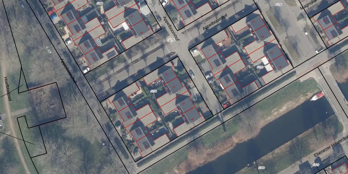 Het perceel waarop Appelboomhof 11 staat heeft een oppervlakte van 2075 m². Dit is een zeer groot perceel. De perceeloppervlakte wordt geregistreerd door het Kadaster. Gedetailleerde informatie over de maten van dit perceel kunt u vinden in het rapport Kadastrale kaart met maatvoering van Appelboomhof 11.