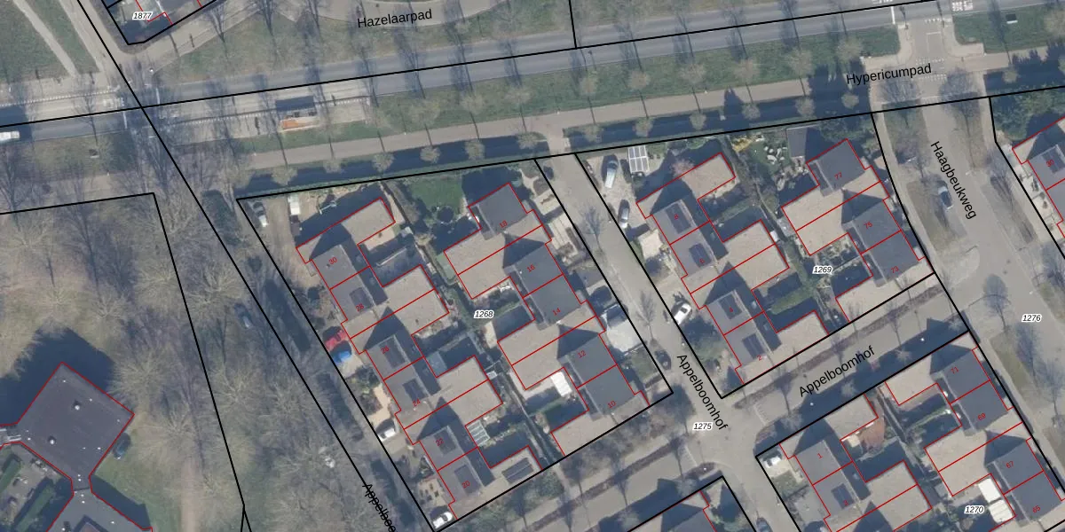 Het perceel waarop Appelboomhof 16 staat heeft een oppervlakte van 3231 m². Dit is een zeer groot perceel. De perceeloppervlakte wordt geregistreerd door het Kadaster. Gedetailleerde informatie over de maten van dit perceel kunt u vinden in het rapport Kadastrale kaart met maatvoering van Appelboomhof 16.