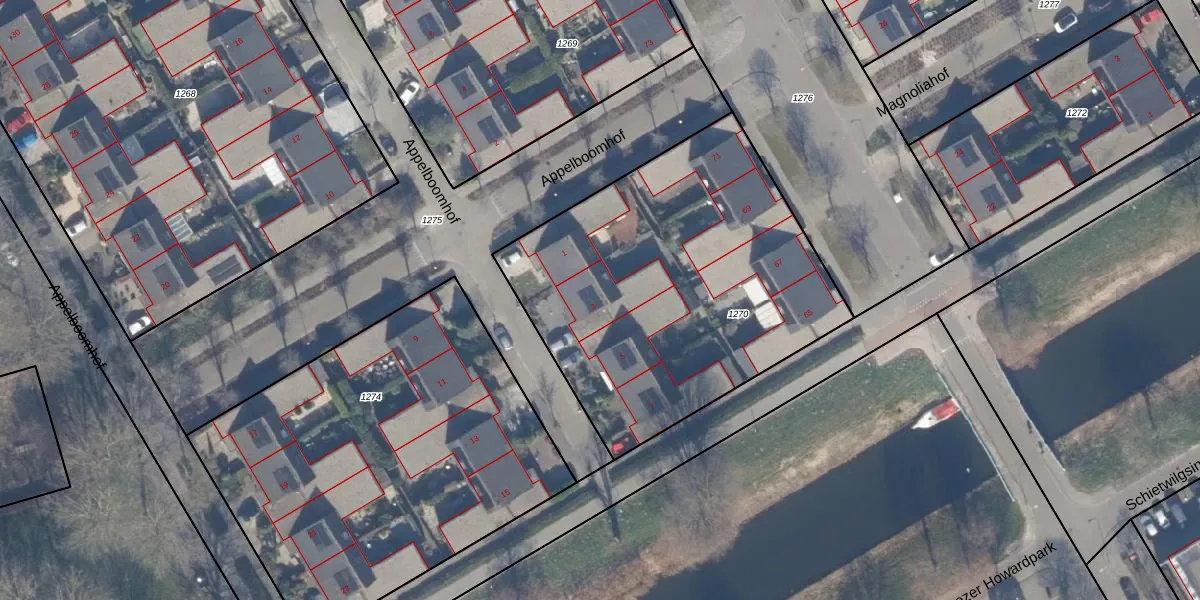 Het perceel waarop Appelboomhof 3 staat heeft een oppervlakte van 1858 m². Dit is een zeer groot perceel. De perceeloppervlakte wordt geregistreerd door het Kadaster. Gedetailleerde informatie over de maten van dit perceel kunt u vinden in het rapport Kadastrale kaart met maatvoering van Appelboomhof 3.
