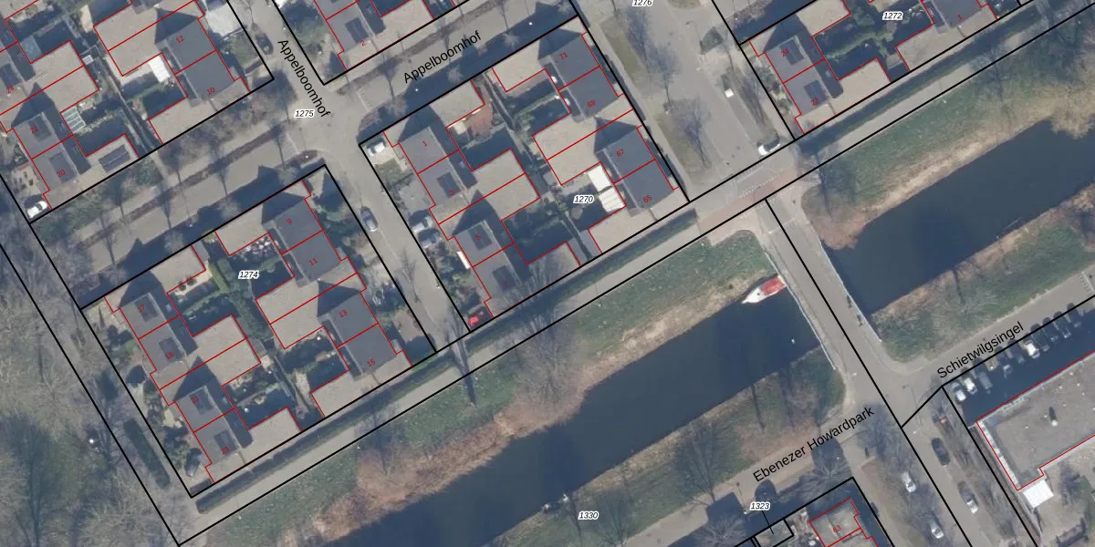Het perceel waarop Appelboomhof 7 staat heeft een oppervlakte van 1858 m². Dit is een zeer groot perceel. De perceeloppervlakte wordt geregistreerd door het Kadaster. Gedetailleerde informatie over de maten van dit perceel kunt u vinden in het rapport Kadastrale kaart met maatvoering van Appelboomhof 7.