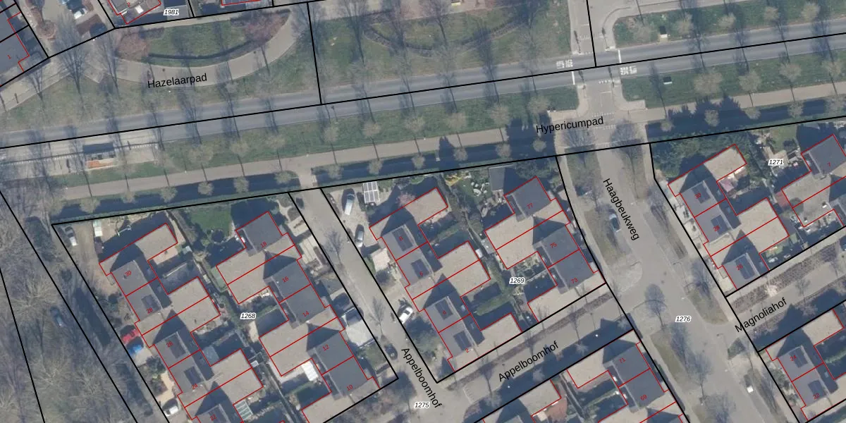 Het perceel waarop Appelboomhof 8 staat heeft een oppervlakte van 2111 m². Dit is een zeer groot perceel. De perceeloppervlakte wordt geregistreerd door het Kadaster. Gedetailleerde informatie over de maten van dit perceel kunt u vinden in het rapport Kadastrale kaart met maatvoering van Appelboomhof 8.